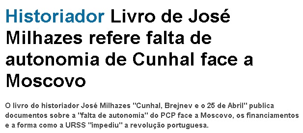 Interessaria mais analisar o livro de José Milhazes e descobrir nele as incongruências, saber se as suas fontes são fiáveis ou foram motivadas pelo dólar, contrapor-lhe documentos (que os deve haver) para o contraditar, apontar-lhe as calúnias, as frivolidades, as meias-verdades e provar que o são. Ou, então, ignorá-lo completamente no caso de no seu livro a objectividade e seriedade histórica serem tão evidentes que não vale a pena gastar o teclado com isso. Mas não estou de acordo que se vá buscar um facto de há 30 anos - o de ir para Moscovo tirar o curso de História através do PCP e, já agora, ficar lá a trabalhar numa editora que lhe deu casa e salário - para o acusar de cuspir no prato onde comia e daí extravasar para a inutilidade, incompetência e falsidade da sua obra actual. Analise o livro quem tiver instrumentos para isso, e é tudo. Já agora, devo dizer que não conheço o Milhazes actual mas conheci o Milhazes antigo: foi meu colega de trabalho em Moscovo e meu vizinho de apartamento. Era um bom camarada, amigo do seu amigo, tratou de um velho conterrâneo solitário acometido de cancro (José Marinho), tinha defeitos mas também méritos: era um ser humano normal.