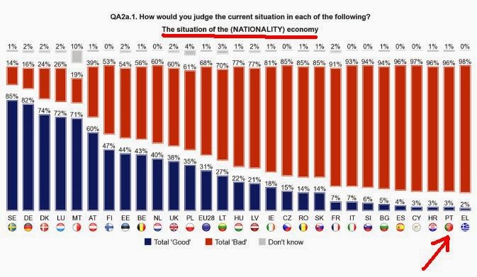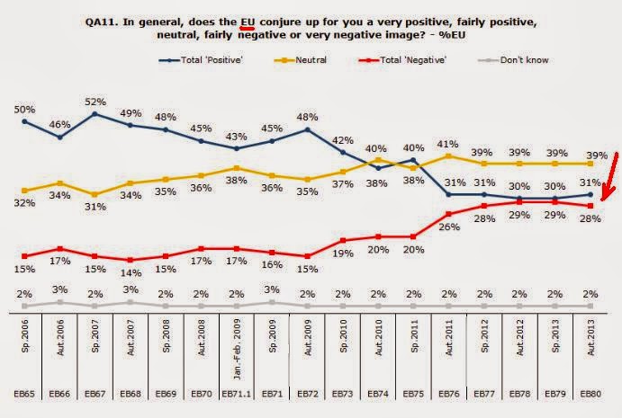Embora com algum atraso, como não me parece que a imprensa portuguesa tenha dado por ele, chamo aqui a atenção para o Eurobarómetro nº 80 divulgado pela Comissão Europeia em Dezembro e com trabalhos de campo realizados em Novembro de 2013. Está disponível aqui.